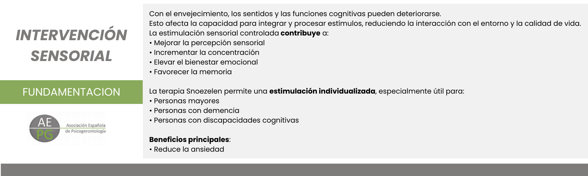 Comenzamos con nuestro nuevo proyecto para el año 2026 llamado «12 meses, 12 intervenciones». El mes de febrero lo dedicamos ala Terapia Sensorial a través de una intervención práctica en residencias de mayores llevada a cabo por Gema Sanz Ponce, psicóloga sanitaria y neuropsicóloga, socia y miembro de la junta directiva de la AEPG.